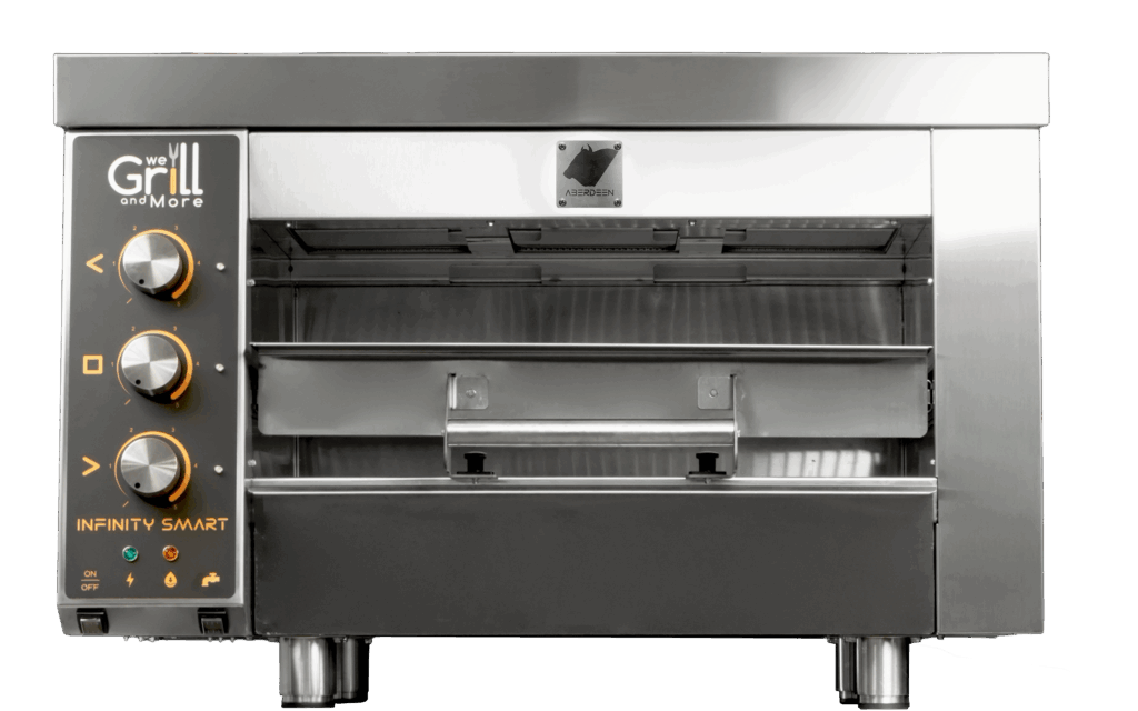 Il nostro Broiler Grill è l’unico che gestisce l’infrarosso perfino per cotture lente, mantenendo la distintiva capacità di raggiungere gli 850°.