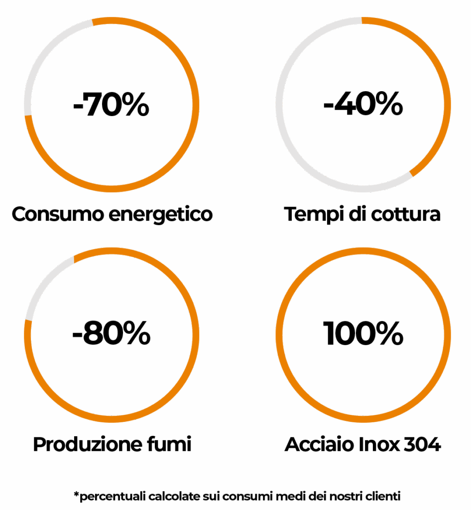 Riduci i consumi energetici: il Broiler System lo accendi solo quando serve. Non dovrai acquistare e gestire QUINTALI di carbone e la sue estrema flessibilità lo rende facilmente utilizzabile da qualunque professionista della tua brigata.