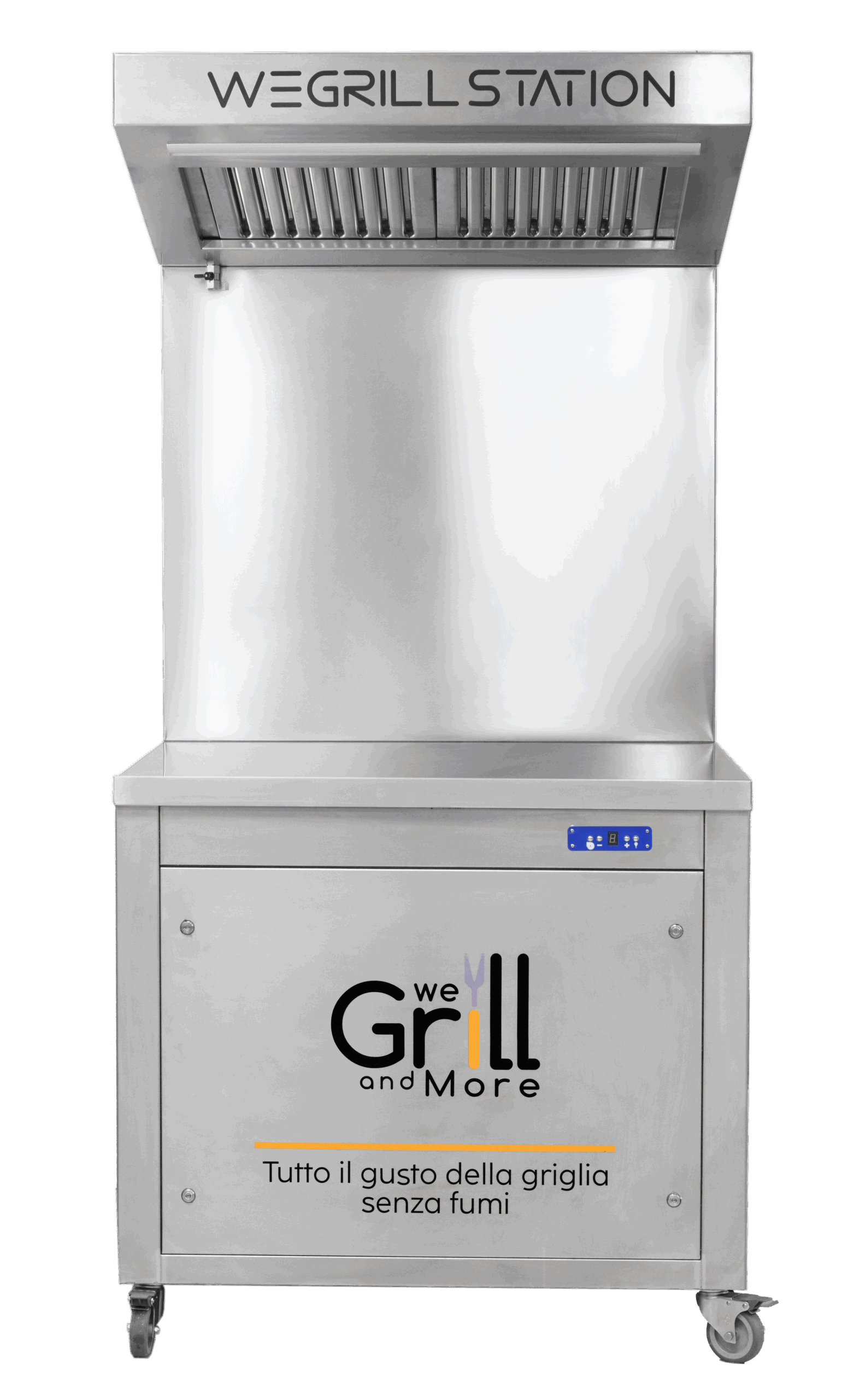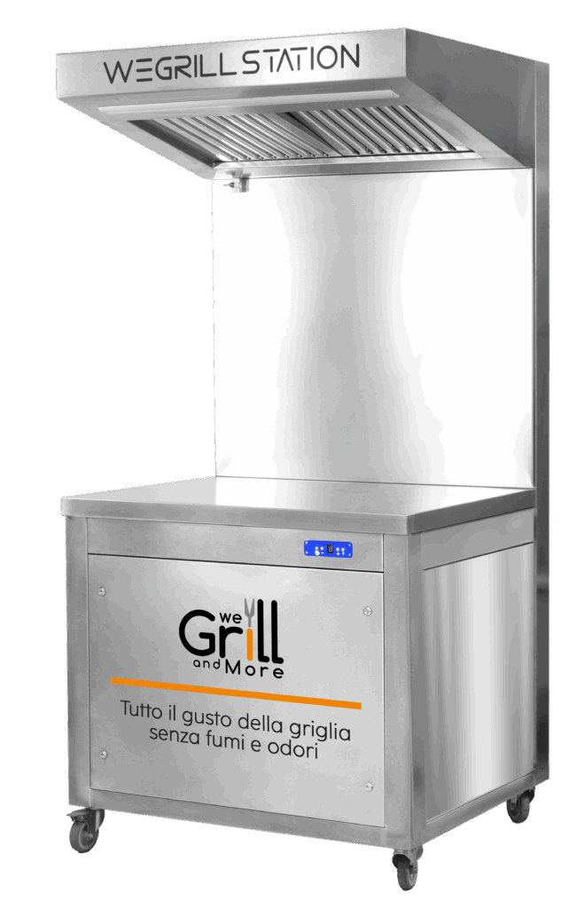 WE GRILL STATION è un’nnovativa postazione autonoma, ideale per tutte quelle situazioni di cottura da effettuarsi in assenza di impianti di estrazione fumi.