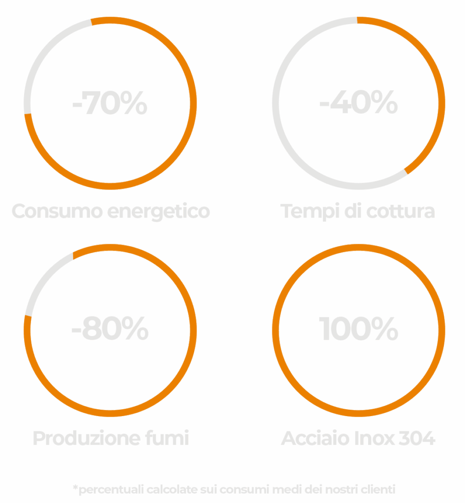 Riduci i consumi energetici: il Broiler System lo accendi solo quando serve. Non dovrai acquistare e gestire quintali di carbone e la sue estrema flessibilità lo rende facilmente utilizzabile da qualunque professionista della tua brigata.